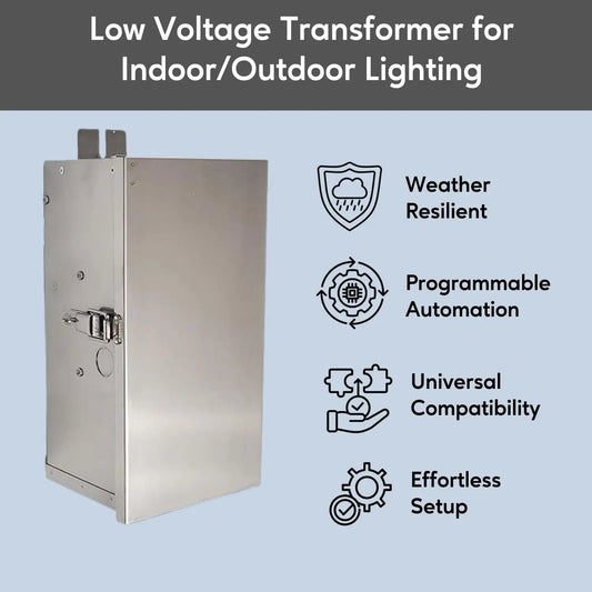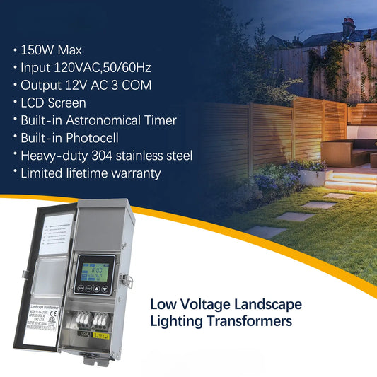 150W Stainless Steel Outdoor Transformer for Lights with Timer and Photocell