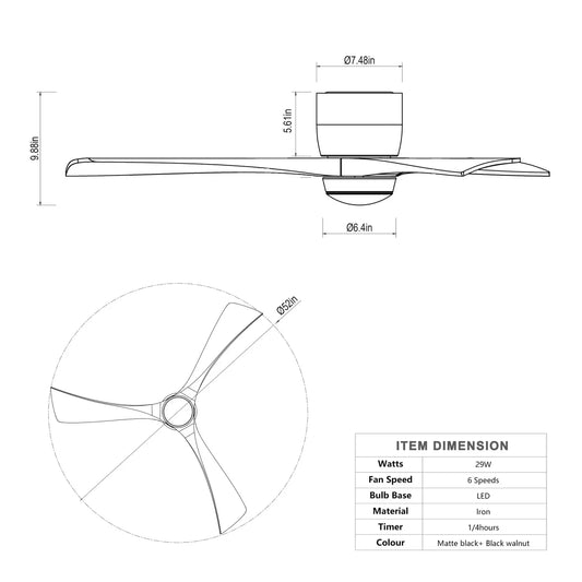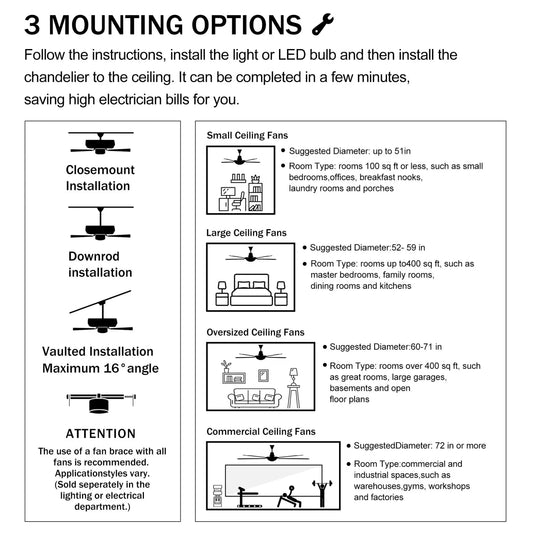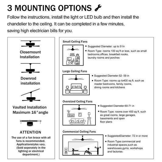 Ceiling Fans with Light with Reversible DC Motor and Adjustable Speed