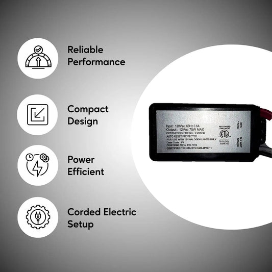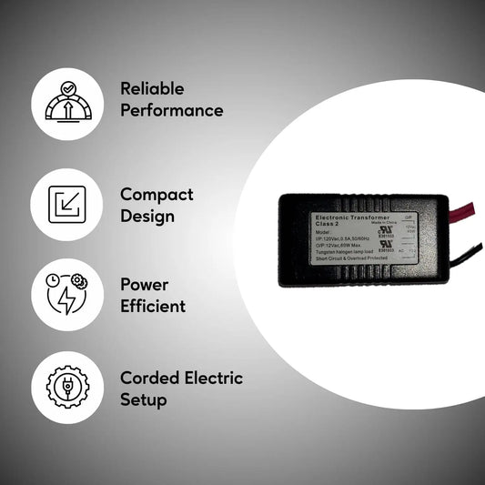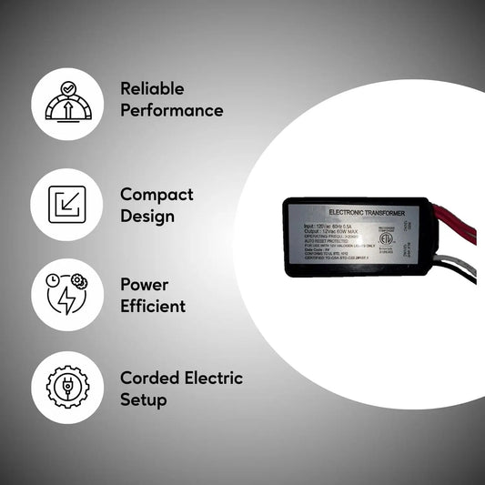110V to 12V 60W Halogen Electronic Black Transformer
